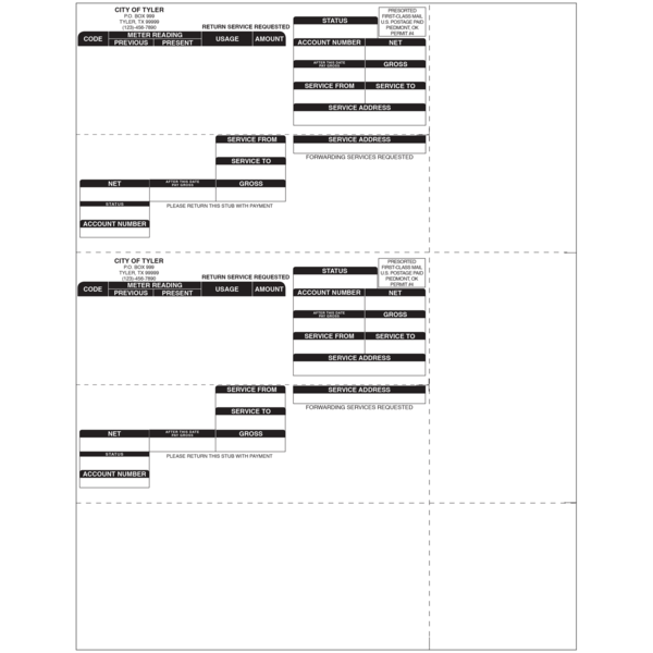 1PC111 Preprinted Utility Bill - BPC1 SKU: IPC111 $0.47 Select options Back $0.47 REPEAT, NEW, OR REPEAT WITH CHANGES ? : Repeat New Repeat With Changes Prior Job# Special Instructions COLOR: Company Information Line 1 Company Information Line 2 Company Information Line 3 Company Information Line 4 Company Information Line 5 City State Zip Phone Fax Email SELECT LOGO COLOR : Black Reflex Blue Process Blue Teal (PMS 320) Green (PMS 348) Green (PMS 347) Brown (PMS 464) Maroon (PMS 201) Burgundy (PMS 208) Warm Red Red (PMS 185) Orange (PMS 151) Gray (PMS 423) Custom Color Logo & Options : $0 - Color Logo $68 - Black Logo $90 - Color Logo No Charge - 1 Color Logo No Charge - Black Logo Quantity -+ Please select options before adding to cart Add to Cart Add to Cart